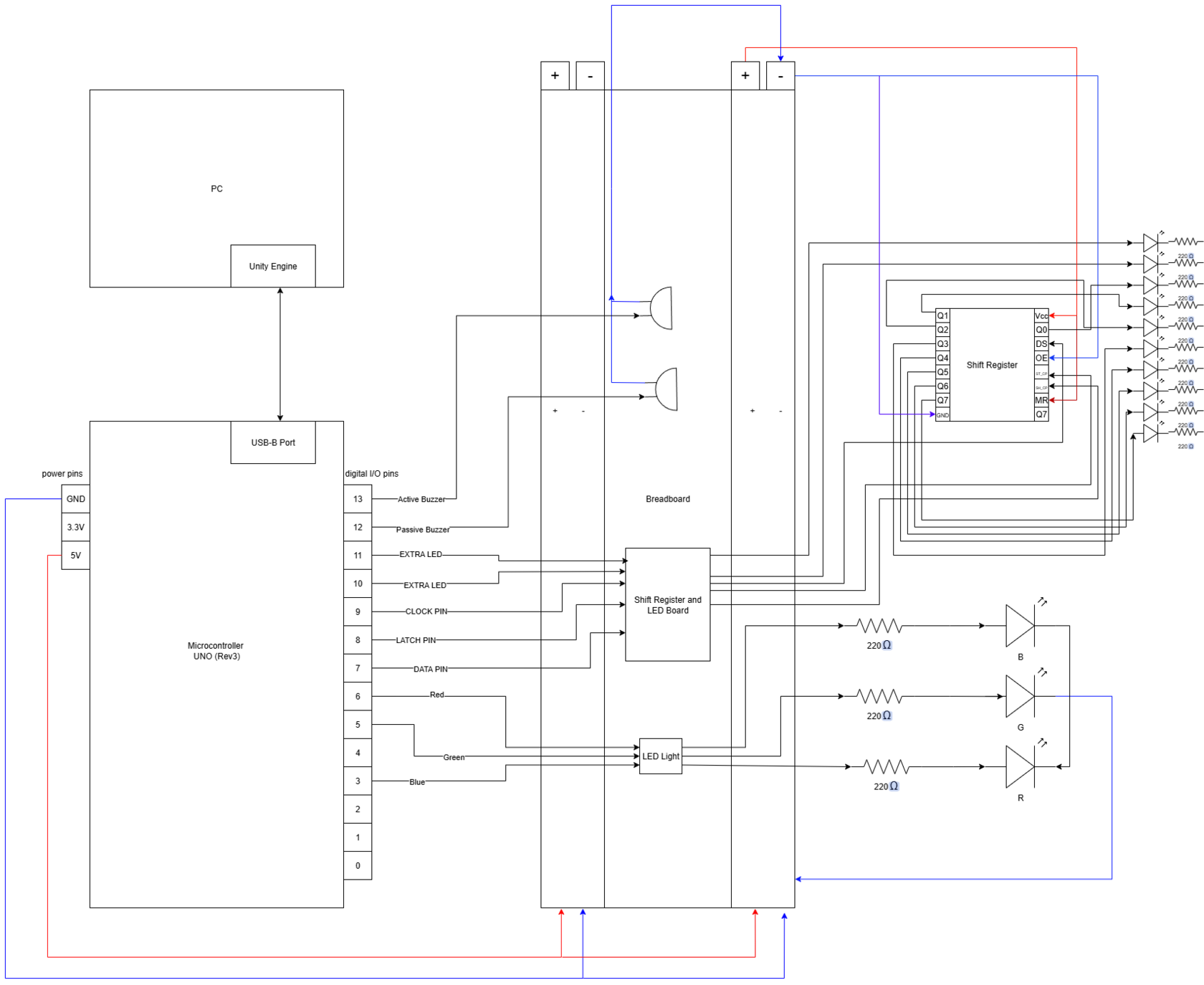 Another significant change was to ensure that the microcontroller was integrated into at least one minigame, so that its inclusion served a functional purpose rather than a purely cosmetic one. After several brainstorming sessions, it was decided that the most suitable activity for this type of game would be a small rhythm-based game with the pet. In this game, the microcontroller would randomly generate buzzes using the active buzzer and then send the timing data back to the Unity engine, prompting the user to reproduce the sequence by clicking the mouse at the correct moments.